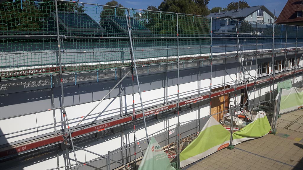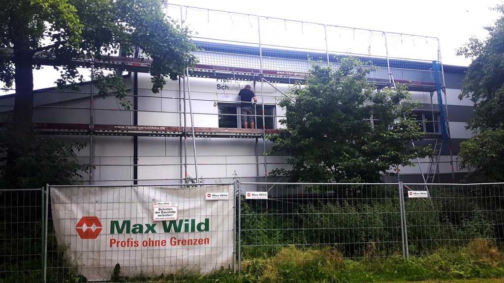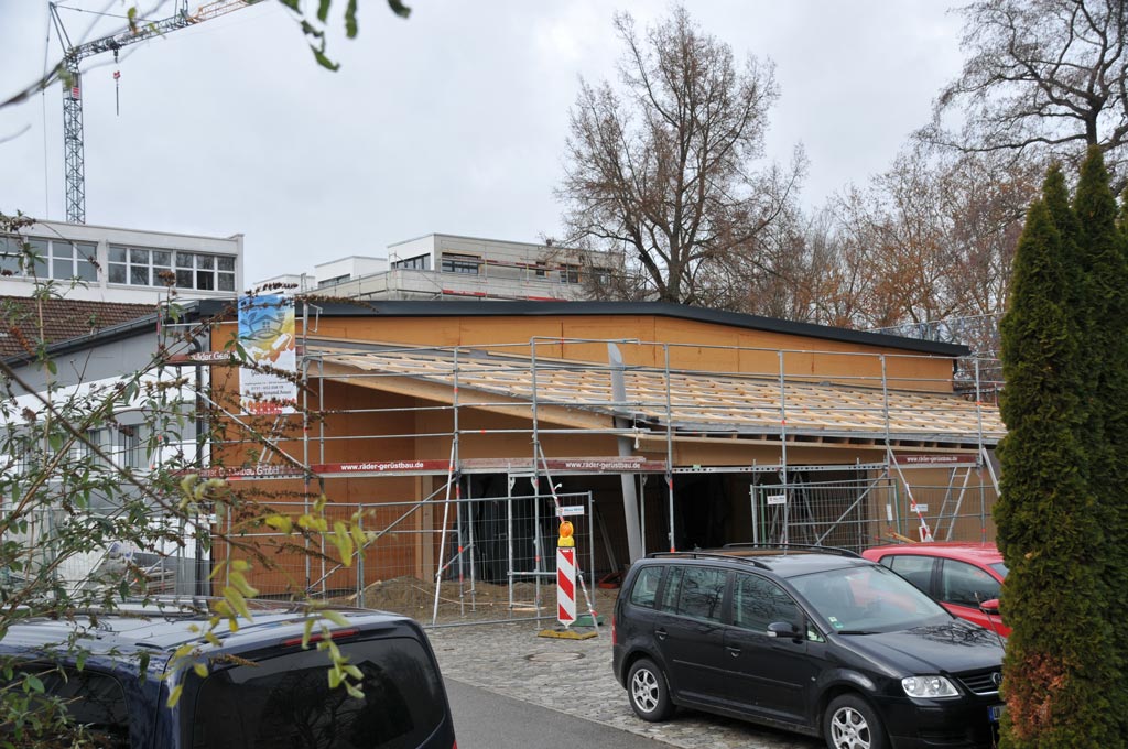 Der Rohbau ist so weit abgeschlossen, dass der Kran wieder abgebaut werden konnte und der Pausenhof nun wieder besser nutzbar ist.