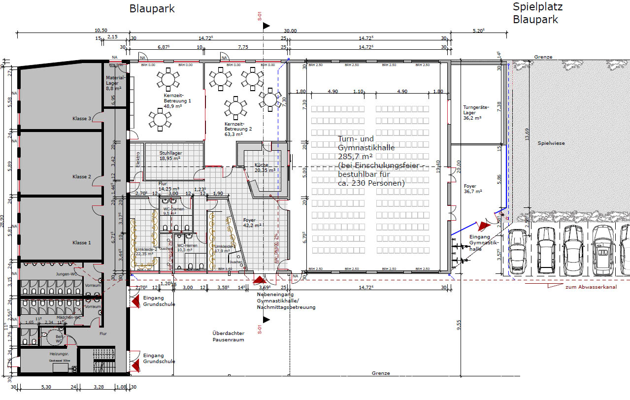Die Baufreigabe ist da. Nun kann es endlich richtig los gehen. Der (Teil-)Abriss der Halle ist für die Pfingstferien geplant, damit die Kinder möglichst sicher sind und der Schulbetrieb möglichst wenig gestört wird.